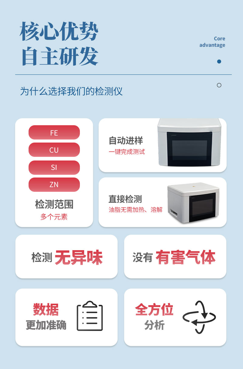 潤滑油脂直接放進油盒進行檢測,無需對油脂進行加熱、溶解等步驟,不破壞樣品。全程檢測無異味、無有害氣體,無需放置于通風櫥,對試驗人員的健康提供了保障;