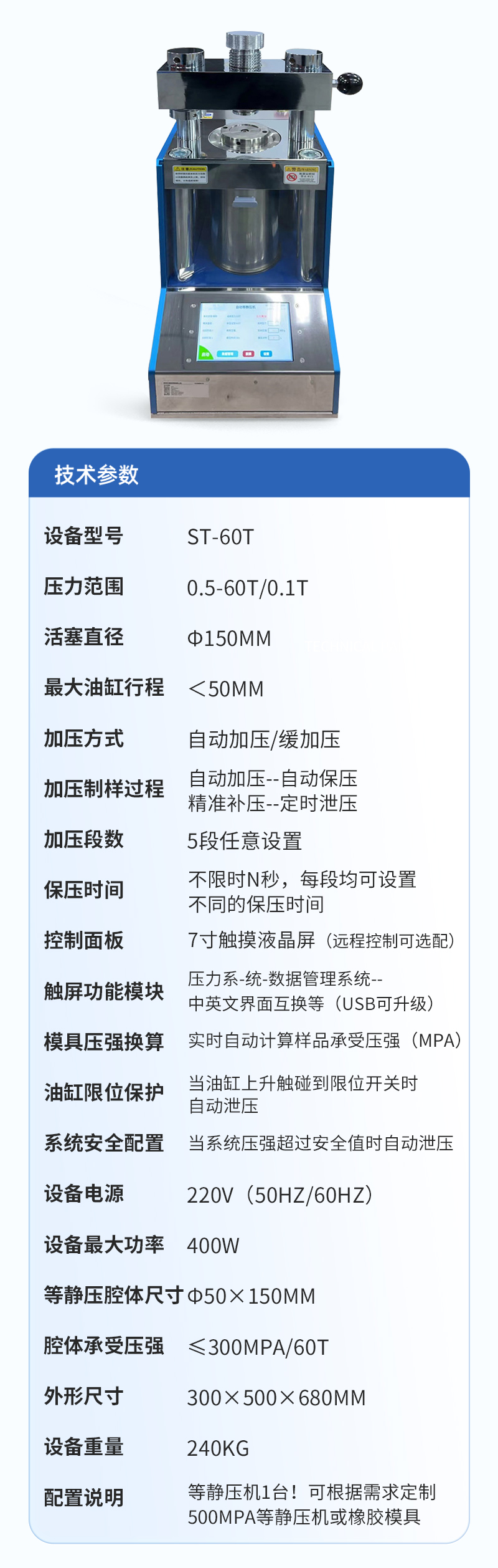 | 配置說明 | 等靜壓機1臺!可根據(jù)需求定制500MPa等靜壓機或橡膠模具 |