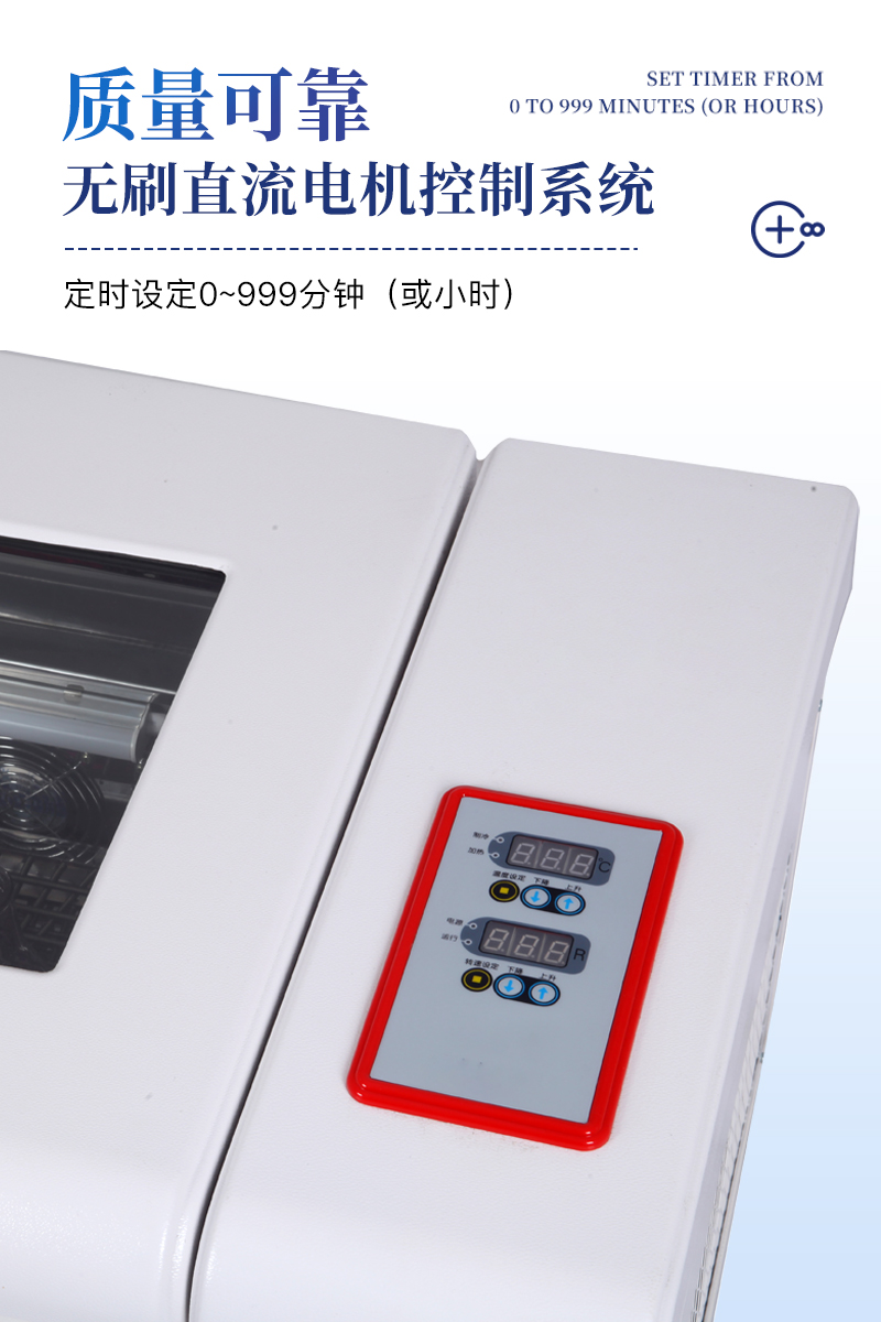 臺式恒溫小型振蕩器專為需求用地面積小的用戶設(shè)計(jì)。具有小外形體積,大工作空間的特性??梢苑胖迷趫?jiān)固的臺面或地面。該型搖床裝備PID控溫系統(tǒng)和無刷直流電機(jī)控制系統(tǒng),可滿足對溫度和速度有較高要求的用戶需求。