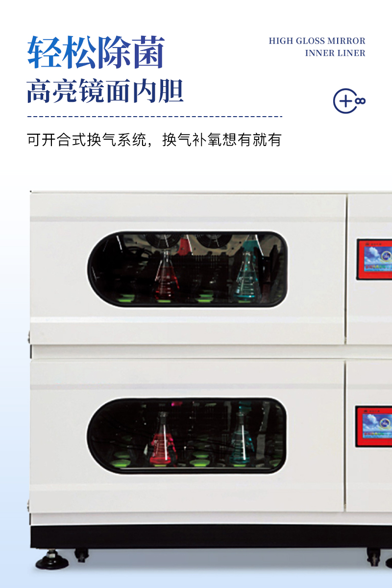 雙層疊式恒溫振蕩搖床人性化可視操作界面,溫馨易懂,全程低壓安全控制,安全呵護更到位,可開合式換氣系統(tǒng),換氣補氧想有就有,高亮鏡面內(nèi)膽,除菌更輕松。