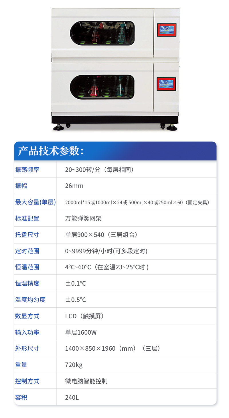 | 振蕩頻率 Oscillation frequency | 20~300轉(zhuǎn)/分(每層相同)20~300rpm |