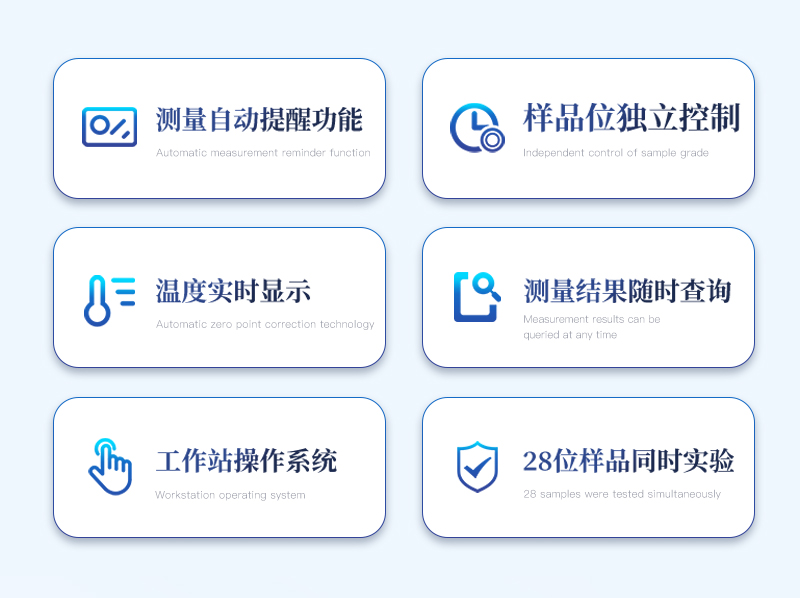 ★樣品位可獨(dú)立控制:每個(gè)樣品位獨(dú)立控制,*多實(shí)現(xiàn)28位樣品同時(shí)實(shí)驗(yàn);每次可根據(jù)情況確定樣品數(shù)量,可對(duì)本批次樣品分組或備注。并可隨時(shí)添加樣品,添加樣品后,不影響原樣品的測(cè)定時(shí)間。