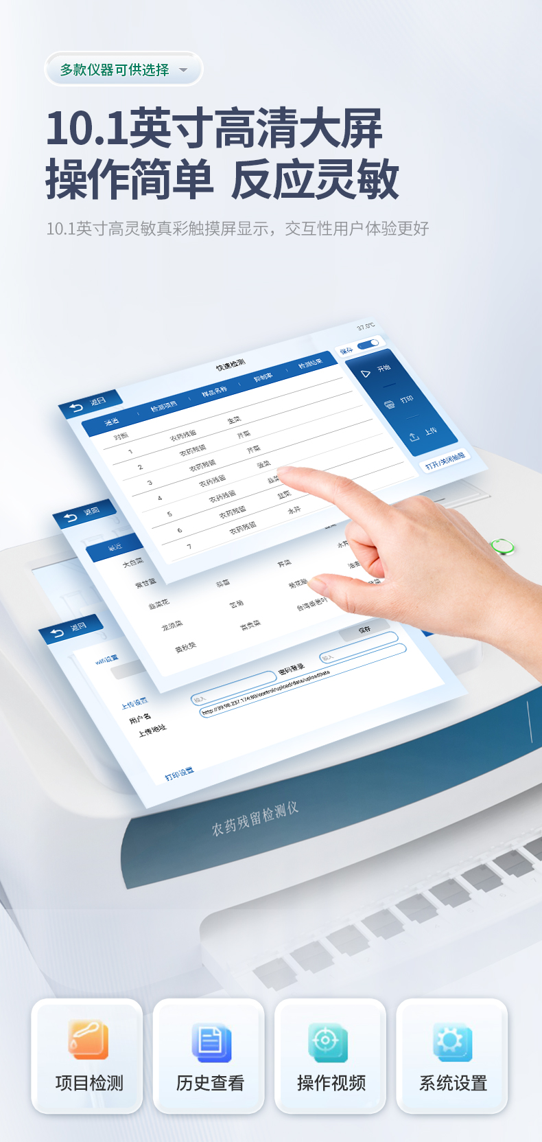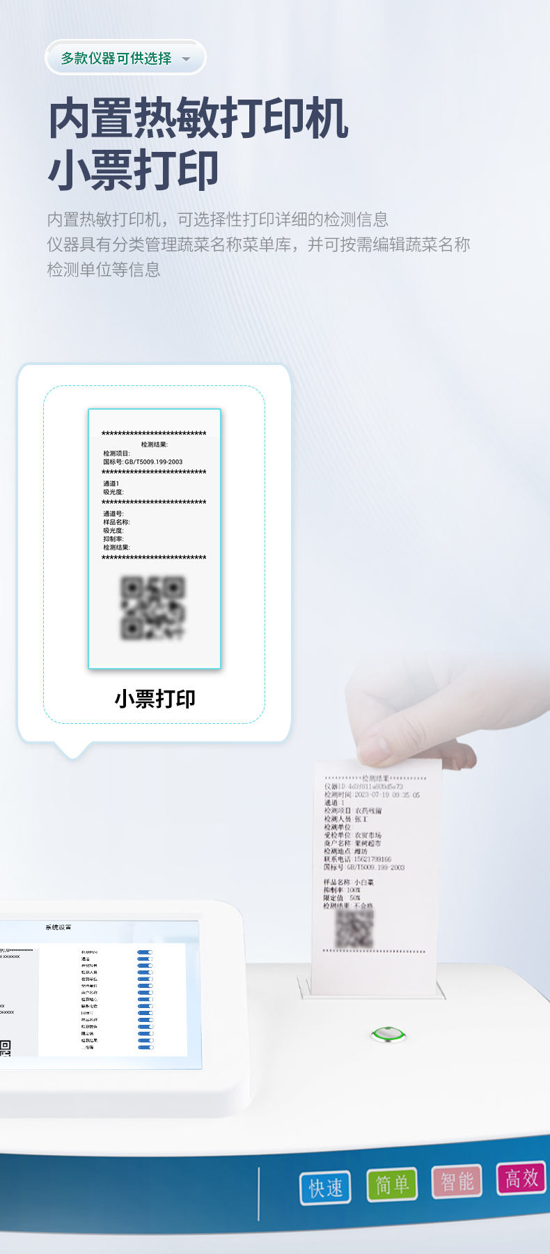 該儀器為三體儀器新研發(fā)一款農(nóng)殘快速檢測儀,采用國標(biāo)速測卡,使檢測速度更快,操作更加簡便。檢測標(biāo)準(zhǔn):依據(jù)國家標(biāo)準(zhǔn)方法(GB/T5009.199-2003)以及世界衛(wèi)生組織WHO、世界糧農(nóng)組織FAO殘留農(nóng)藥檢測標(biāo)準(zhǔn)、世界環(huán)境保護(hù)局EPA參照攝入量等要求來設(shè)計。