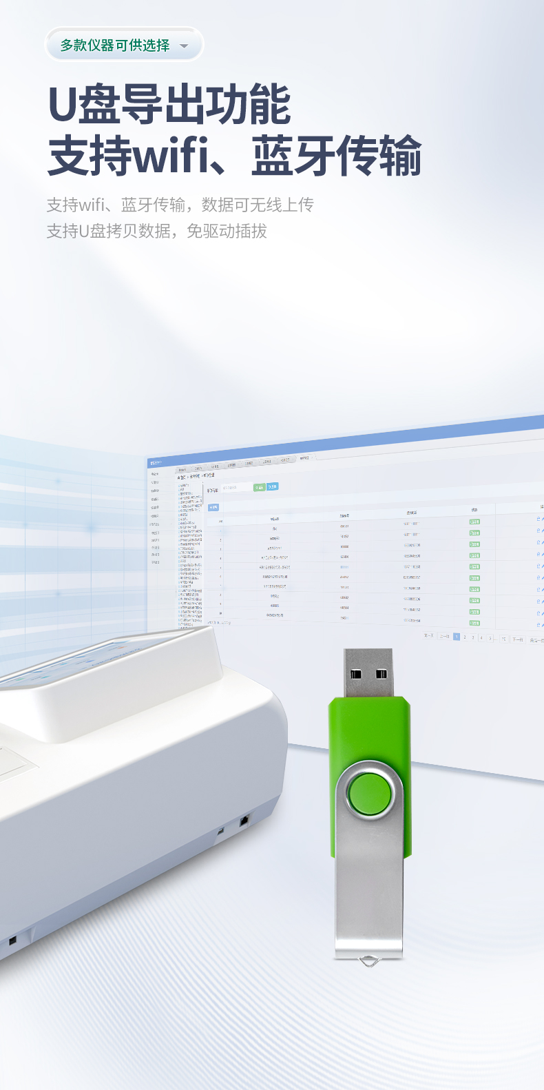 5、支持wifi、藍(lán)牙傳輸,數(shù)據(jù)可無線上傳;支持U盤拷貝數(shù)據(jù),免驅(qū)動插拔。