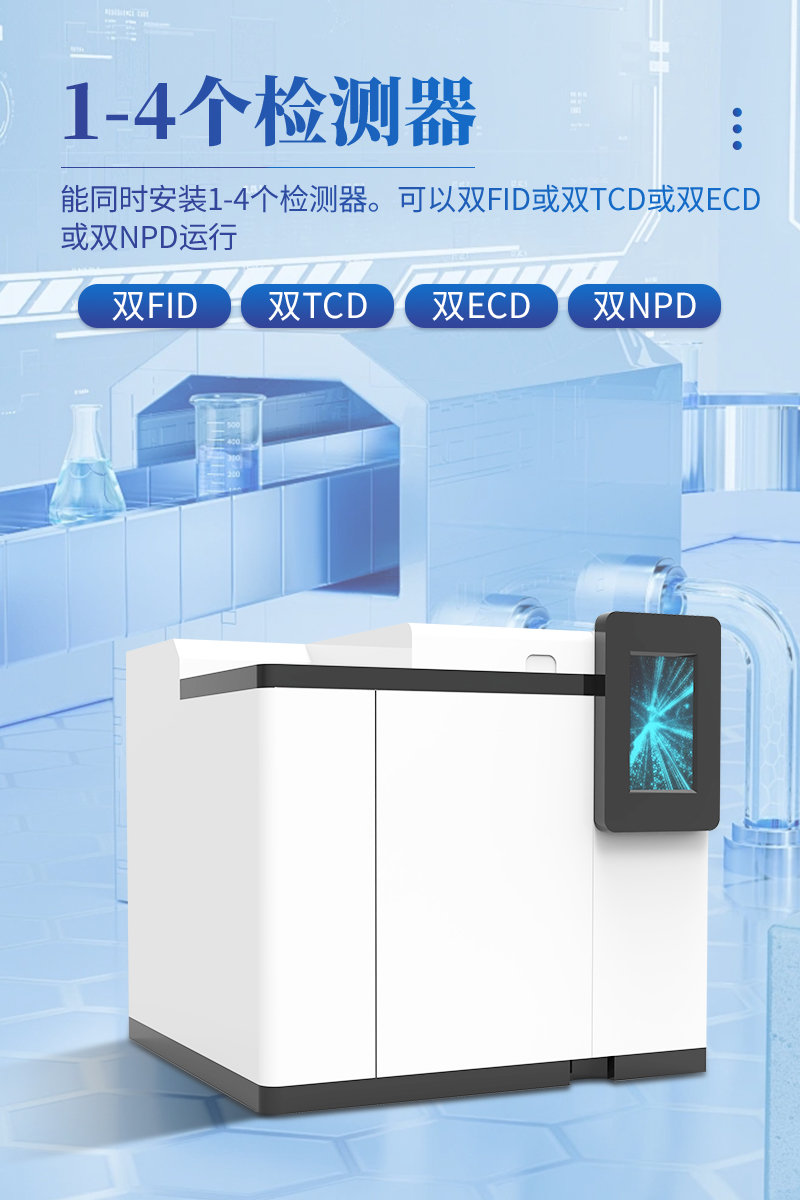 11.能同時(shí)安裝1-4個(gè)檢測器??梢噪pFID或雙TCD或雙ECD或雙NPD運(yùn)行。TCD帶有雙路柱后補(bǔ)充氣,故可單柱、雙柱、毛細(xì)管柱使用。