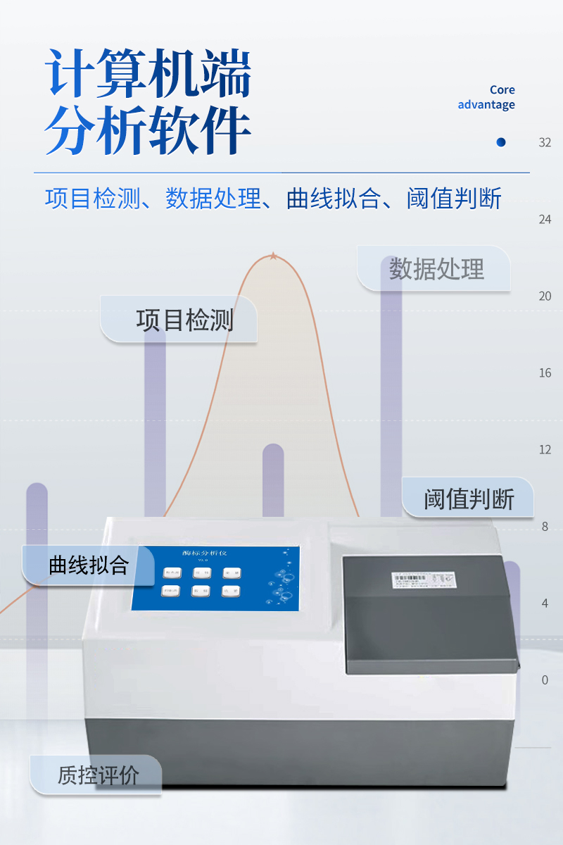 13.工作站軟件:隨機(jī)配備專業(yè)的計算機(jī)端酶標(biāo)儀分析軟件,具備完善的項目檢測、數(shù)據(jù)處理、曲線擬合、 閾值判斷、質(zhì)控評價、數(shù)據(jù)庫管理、以及自定義報告單格式等功能